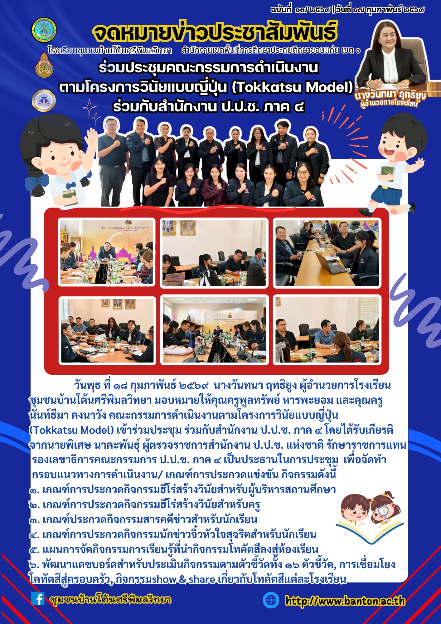 ร่วมประชุมคณะกรรมการดำเนินงาน ตามโครงการวินัยแบบญี่ปุ่น (Tokkatsu Model) ร่วมกับสำนักงาน ป.ป.ช. ภาค ๔