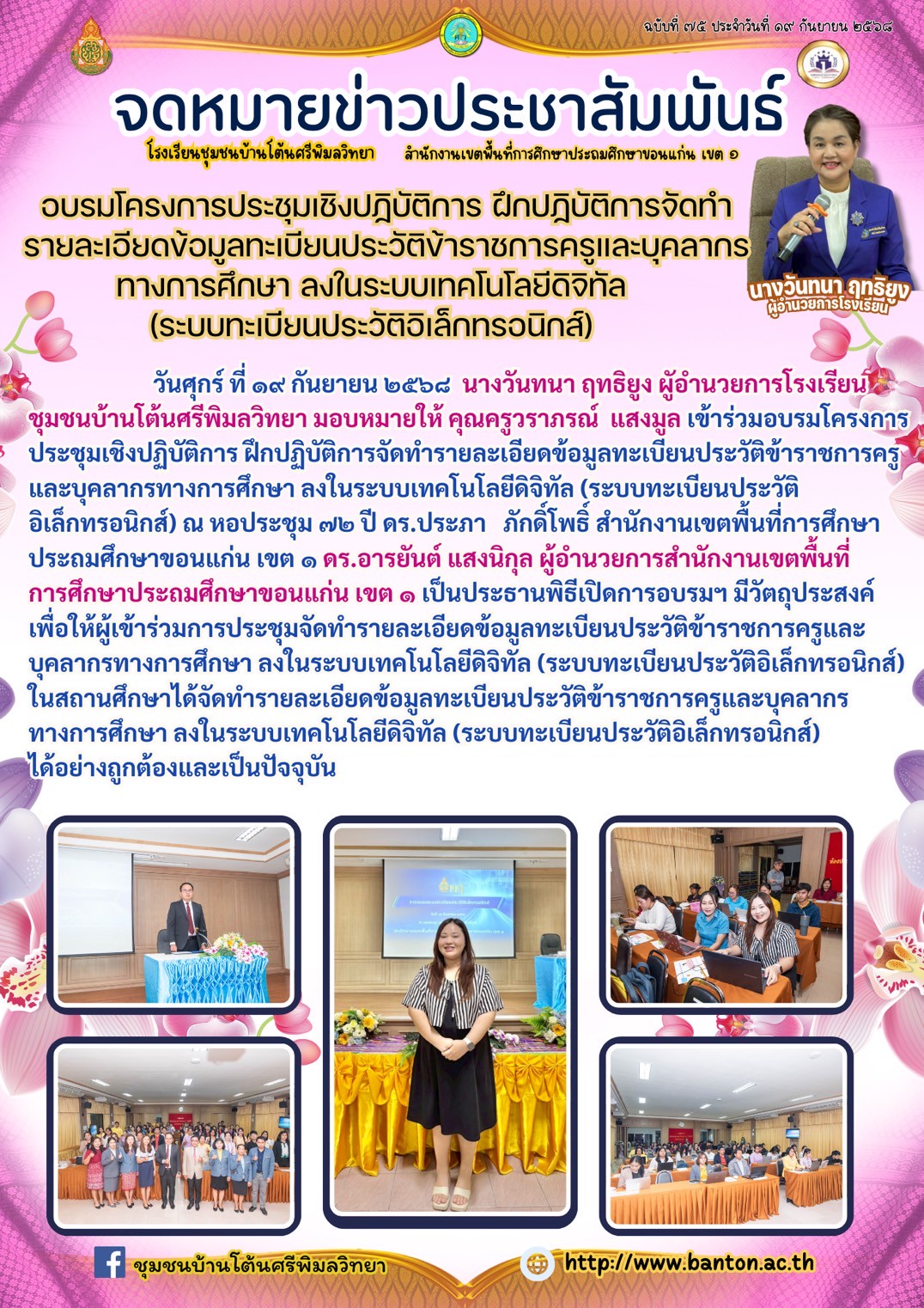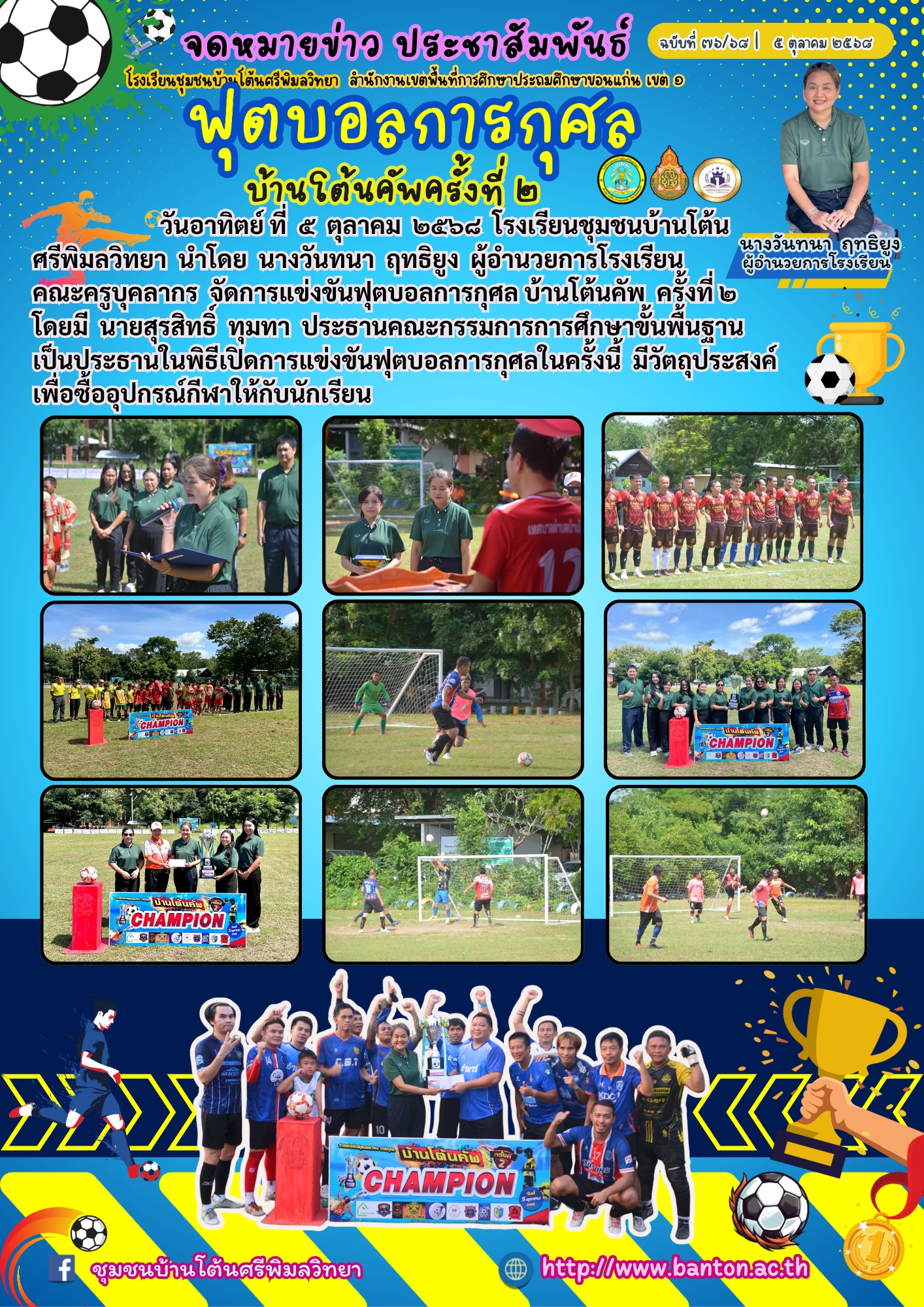 โรงเรียนชุมชนบ้านโต้นศรีพิมลวิทยา หมู่ที่ 1 ต.บ้านโต้น อ.พระยืน จ.ขอนแก่น 40320ผู้ดูแลระบบ นายพูลทรัพย์ หารพะยอม โทร 085-0142923 email : bantonesc@gmail.com